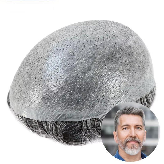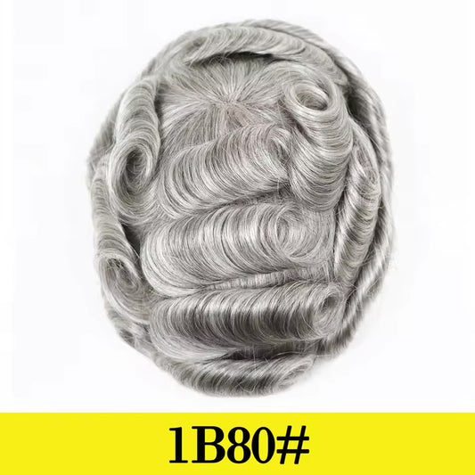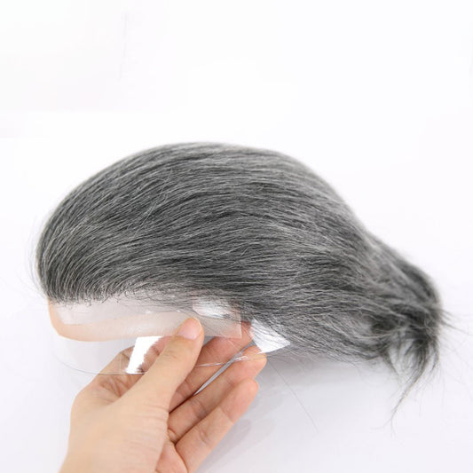 #1B60 Silver Grey Human Hair Toupee Wig Mens Replacement System Mono with PU around Base Wig Toupee