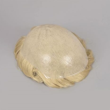 Full Poly Skin Base #613 Bleach Blonde Human Hair Toupee Hairpieces for Men