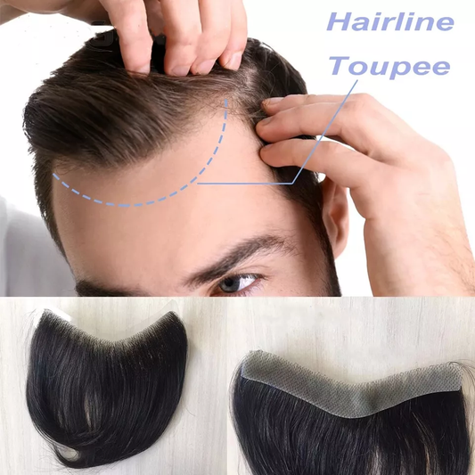 Men Forehead Hairline Toupee 100% Human Hair Skin PU Frontal Hair Patch